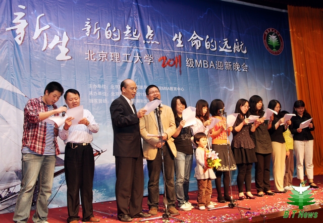 管理与经济学院党委书记李金林教授、MBA教育中心主任周毕文,副主任赵玉焕、佟岩副教授以及MBA教育中心的全体老师出席了晚会,与2011届MBA、2010届MBA代表、2011届MPAcc 、MIB,国际留学生、国际交换生齐聚一堂,共同欣赏了一场别开生面的精彩晚会。李金林在晚会的开始给大家做了鼓舞人心的讲话,让大家为成为一名北理学生,感到无比的骄傲和自豪。