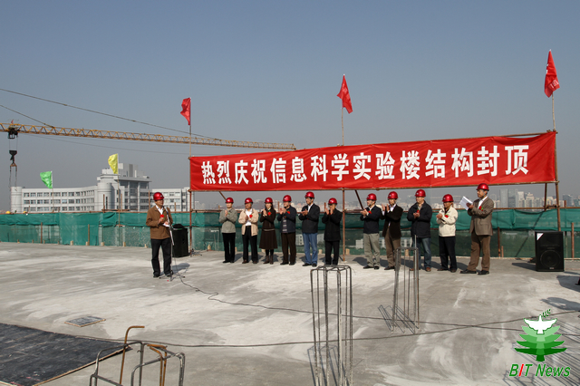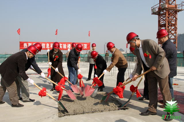 在这金秋送爽、丹桂飘香的时节,2011年10月18日10时28分,米兰milan官方网站信息科学实验楼结构封顶仪式在中关村校区隆重举行。毛二可院士,赵平副校长,赵显利副校长,基建处处长郭守刚,审计室主任李振键,正处级纪监员金军,信息学院副院长徐晓文,财务处副处长周勇,北京东方华太建筑设计有限责任公司副总经理何国梅,北京方正建设工程管理有限公司副总经理肖承海,高碑店市建筑企业集团总经理魏日华、副总经理邵波等相关人员出席了信息科学实验楼结构封顶仪式。