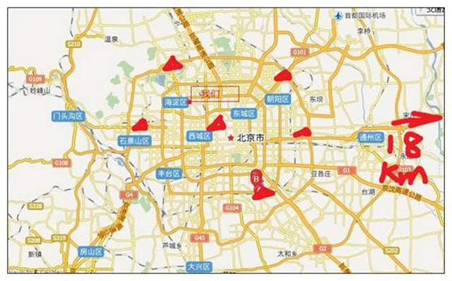 从日本回国后,距离2011FSC只有不到一个月的时间,但大家信心满满地针对前期比赛暴露出的问题日夜兼程加以弥补、改进。每天早晨8:00起工作间、试车场都热闹非凡,大家利用自己的课余时间各司其职进行方案的改进、实验等工作,此外还有大批同学往返于肖家河加工厂、朝阳区各汽配城以及通州试验场(见上图标记)。每晚9:00—10:00同学们汇聚在机械与车辆学院会议室进行总结和安排第二天的任务,每晚10:00—11:30进行总结会后的静态答辩演练。