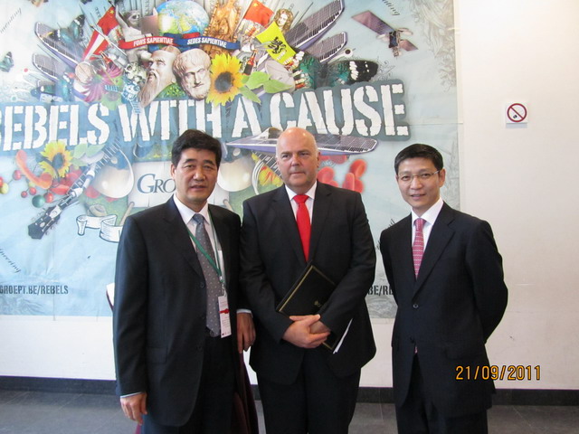 赵显利副校长(左),比利时议长彼得斯(中),中国驻比利时大使廖力强(右)
