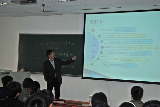 2011年10月29日,由管理与经济学院MBA教育中心主办,2011级在职MBA班承办的2011-2012年度职业发展系列活动之第四期“项目管理经验分享交流会”在我校信息楼2006教室隆重举行。MBA教育中心部分老师和MBA学员近200人参加了本次活动。