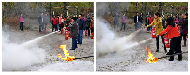 11月8日下午16:00时,保卫处有关同志对理工附小的教师们和部分新上岗的保安员在学校戊区,就如何使用灭火器扑救初期火灾进行了培训,并进行了模拟灭火演习。附小柏淑芳校长率先垂范,每一位附小的教师、参训保安员都进行了亲身体验,从活动中学习了扑救初期火灾的技能。