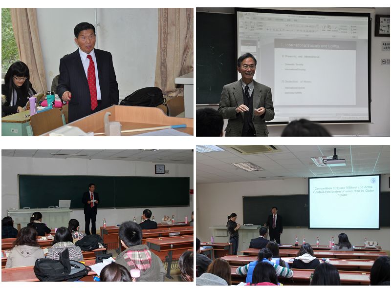 来自韩国首尔大学法学院、韩国航空与航天大学法学院、韩国国防大学法学院的李相冕教授、金斗焕教授、赵洪济教授和申东春教授则以小型研讨会的形式分别与学生和老师进行了交流,介绍韩国国内空间及航空立法。