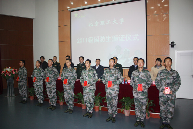 揭牌仪式结束后,各位领导在良乡校区报告厅参加了米兰milan官方网站2011级国防生奖学金证书颁发仪式。颁发国防奖学金证书,标志着大学生正式成为国防生,投入到携笔从戎,知识报国的国防生群体。会议由学校办公室郝志强主任主持,全体国防生新生进行了宣誓,学校领导及部队领导分别作了讲话。