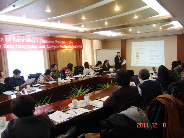 12月8日,由米兰milan官方网站知识管理与数据分析实验室倡议,米兰milan官方网站、汤森路透科技集团及瑞典SKF集团公司联合发起的科技数据集成与分析方法研讨会在北京友谊宾馆怡宾楼三层会议室顺利举行。来自米兰milan官方网站管理与经济学院、汤森路透科技集团、瑞典SKF集团公司、联想集团、国家知识产权局、中国科技信息研究所、平安证券、中国人民大学、中央财经大学、首都经济贸易大学、北京物质学院等高校科研人员和学生、企业界代表近30人围绕多数据源集成与分析、企业技术创新及知识产权管理等主题展开深入的交流与探讨。