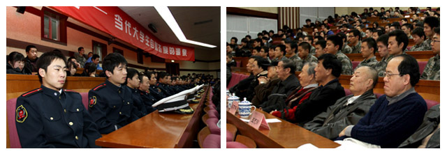 在提问和互动环节,6位国防生和在座同学们就关心的军旅文化、国际及周边形势问题和个人发展等问题踊跃提问;胡教授渊博的学识和幽默的回答将现场的气氛推向了高潮。