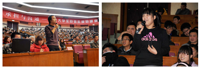 胡教授从当代中国的整体情况出发,指出“承担”与“沟通”问题是现今国家在转型期、发展期中各阶层所面临的问题,是一个社会问题。所有人都面临着人与人之间,人与社会之间,人与自然之间的沟通问题。胡教授认为培养、锻炼、提高个人的沟通能力,需要在平时的工作学习中磨练自己、积淀智慧、掌握技巧。最重要的是放平心态、平等相待、换位思考,要具有仁爱之心、做到以人为本,以一种感恩的心态与人交流,在沟通的过程中,还要注重对象,采取不同的沟通方式,调整自己与沟通对象的平衡关系,找到合理沟通的契合点,使彼此形成共鸣,就会事半功倍。当代青年大学生不仅需要培养良好的沟通能力;更需要承担责任的勇气,沟通的前提便是承担。