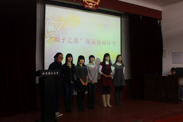 精彩纷呈的答辩和提问环节结束后,校团委副书记高博宣布了本次比赛的结果,分别是“学习之星”祝胜、“奉献之星”黄青霞、“体育之星”孙博、“自强之星”张远龙、“科研之星”倪俊、“才艺之星”赵丽丽、“阳光之星”李梦云以及“双子之星”陈婧和吴丹。
