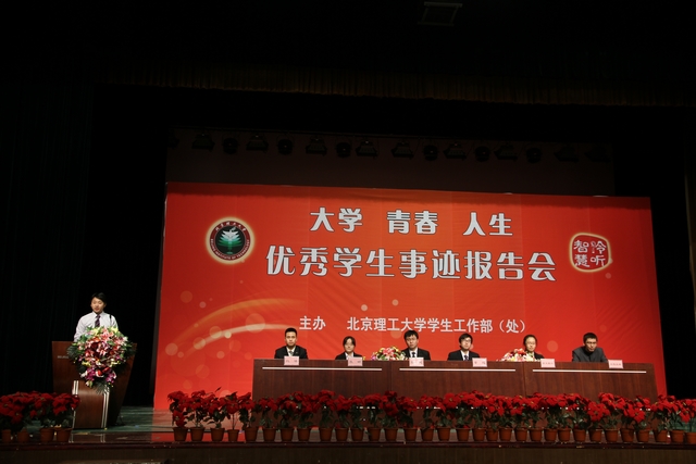 12月22日,米兰milan官方网站第六届大学青春人生报告会在北京工商大学良乡校区文体馆隆重举行。米兰milan官方网站党委副书记、副校长李和章,校长助理姚利民,宣传部部长刘明奇,学生工作处处长杨海,校团委副书记高博、良乡校区管理处副处长霍俊斌以及各学院分管学生工作的副书记、副院长出席报告会,2011级2000余名学生到场聆听。