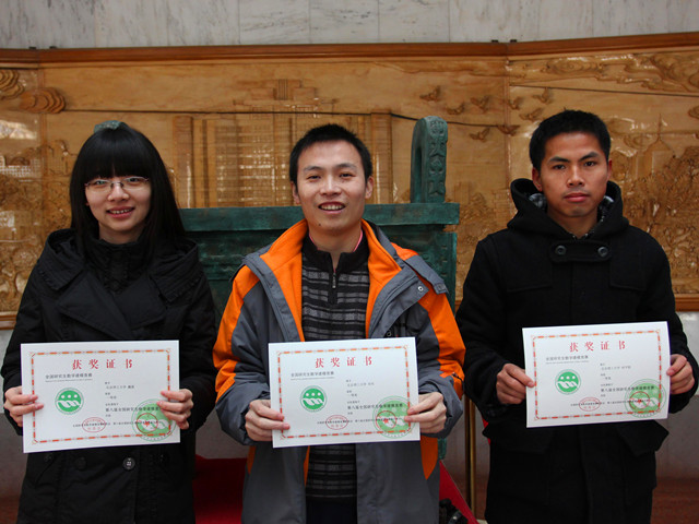 图为刘军、戴荔、何平胜所组成的参赛队获得了全国一等奖