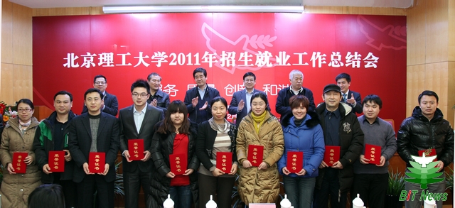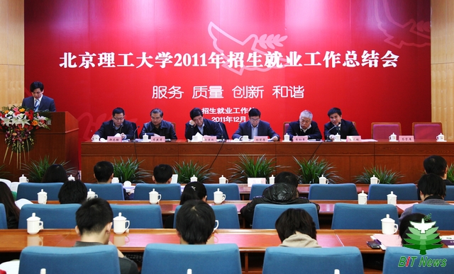 会上,招生就业工作处副处长罗佳汇报了2011年招生就业工作情况。今年我校招生就业工作都取得了可喜成绩。招生方面:2011年我校共招收本科新生3700名,生源质量呈现稳中有升势头。在向社会公开录取最低分(或投档分数)的23个省中,我校有18个省份进入全国高校前20强,21个省份进入“985工程”高校前15强,22个省份进入以工科为主高校前10强。在就业方面:在全国宏观就业形势逐年严峻的情况下,我校取得了本科生就业率为97.06%,研究生就业率为98.54%的成绩,各项指标稳居北京重点高校前列;我校还荣获教育部“2010-2011年度全国就业典型经验高校”(就业50强)称号。