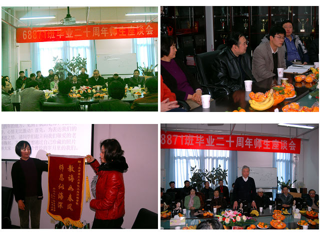 在师生座谈会上,师生齐聚一堂,共同回忆校园生活,探讨学院发展。副院长陈实、副书记副院长张春程、过控教研室离退休教师及现职教师参见了座谈会。座谈会上,陈实老师对校友返校表示了热烈的欢迎并介绍了学院近年来的发展情况,使校友们对学院学科队伍的建设、科研活动的开展以及专业结构的调整有了较为全面的了解。化工系系主任陈祥光老师对过程装备与控制工程专业的学科发展和学科建设进行了介绍。校友们也依次向在座的老师和同学介绍了自己的工作和生活情况。校友们表示,虽然专业一直在变迁,但是同学们对于老师和学院的情谊从未改变。随后,原68871班班长王明康校友代表全班同学向学院和老师赠送了锦旗:“教诲如春风,师恩似海深”,表达了校友们对学院和恩师最衷心的感谢。看到自己的学生事业有成,家庭和睦,老师们都倍感欣慰。最后,退休教师黄聪明教授将一首《我的家》送给了所有的校友,希望校友们常回来看看。