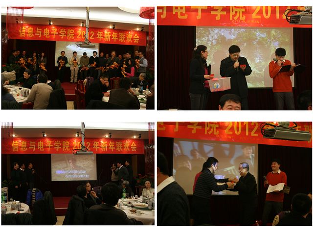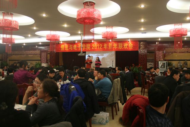 2012年1月12日,信息与电子学院2012年新年联欢会隆重举行,全体教职工欢聚一堂,共迎新春。副校长赵显利出席团联欢会,曾经在信息学院工作和学习过的校职能部门和其他学院的部分领导和老师也应邀参加了联欢会。联欢会由青年教师刘渊和刘娜主持。