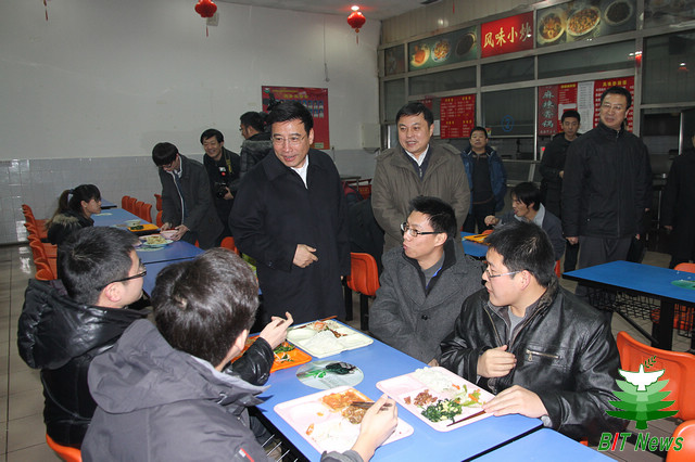 最后,苗圩部长一行来到第三食堂看望假期留校的学生,与学生进行了亲切的交谈,询问大家春节期间的生活和学习安排,并向留校学生及其家长送上了新春的祝福。