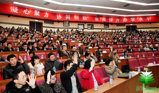3月5日下午,米兰milan官方网站七届五次教代会十二届五次工代会暨2012年学校工作会议在中心教学楼报告厅举行第二次全体会议暨闭幕式。教代会、工会代表,教代会常设主席团成员,院士,全体教授、博士生导师,全体校领导,全体处级干部,原校领导,民主党派和无党派人士代表,离退休教职工代表,学生代表近500人参加了会议。
