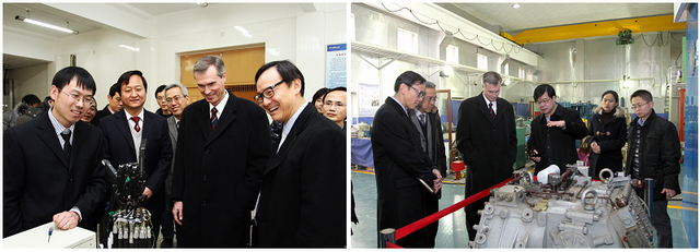 仪式举办之前,来访嘉宾参观了自动化学院和机械与车辆学院有关实验室,并与学院师生进行了短暂交流。