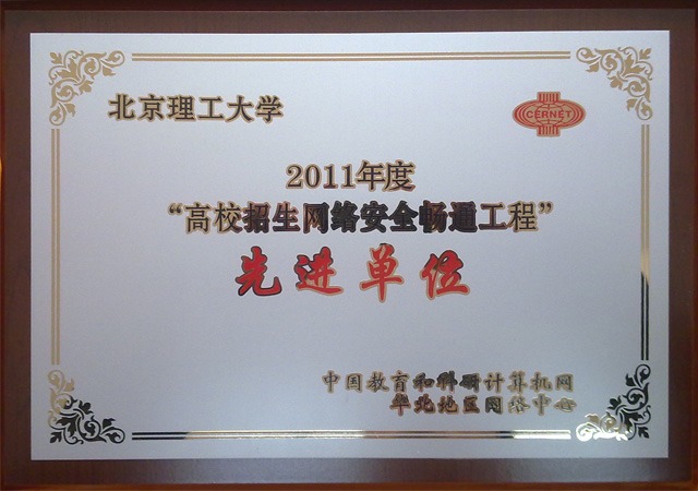 日前,我校网络服务中心获得了由中国教育和科研计算机网(CERNET)颁发的2011年度“高校招生网络安全畅通工程”先进单位称号。