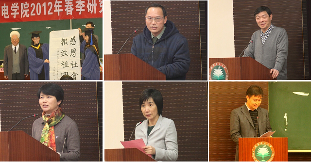 惜别母校建功立业,续写人生锦绣篇章。2012年3月19日下午,光电学院2012届春季研究生毕业典礼暨学位授予仪式研究生楼101报告厅隆重举行。出席典礼的有校友代表:装甲兵工程学院张志诠教授,学院领导:魏平、韩宝玲、郝群、赵长明、邹锐,和周立伟院士、白廷柱、曹峰梅、刘越等学院教师。典礼由邹锐副书记副院长主持。