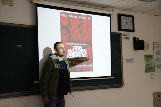 德语外教Stenfa Sklenka在讲解电影《情键四分钟》。