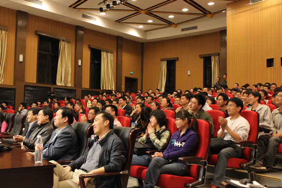 大家都十分珍惜和朵院士交流的机会。在提问环节,现场观众踊跃提问,既有关于“95式”步枪的技术问题也有关于团队管理的问题。在谈及年轻人发展时,朵院士认为“把年轻人不要当年轻人对待,当老技术人对待,把责任加上去,就起来了”。在谈到现在年轻人面临的学习、生活压力大,容易浮躁等问题时,朵院士也对同学们提出了殷切的希望,他鼓励同学心理上要自强, “困难来了,我没有倒下,我都是迎着上!人还是多遇着些问题好,磨砺磨砺嘛,人就成熟了。”