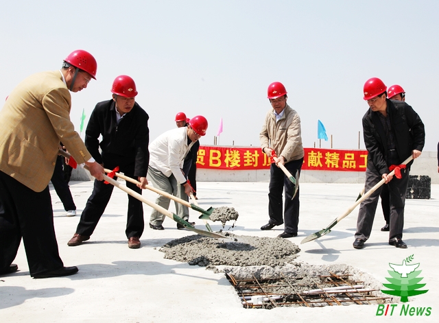 4月16日上午,米兰milan官方网站良乡校区大学生公寓(六)号楼结构封顶仪式在良乡校区举行。良乡高教园区、房山区建委、米兰milan官方网站副校长赵平,副书记、副校长李和章等领导相关人员,设计、监理、施工单位有关领导和代表出席了封顶仪式。出席封顶仪式的领导挥锹浇筑,随着最后一罐混凝土的浇筑,大学生公寓(六)号主体结构在鞭炮齐鸣声中封顶。大学生公寓(六)号楼结构封顶标志着大学生公寓(六)号楼工程已完成主体结构,即将进入二次结构砌筑和装修施工阶段,这为保证2012级新生入学,为实现学校的 “十二五”规划目标奠定了坚实基础。