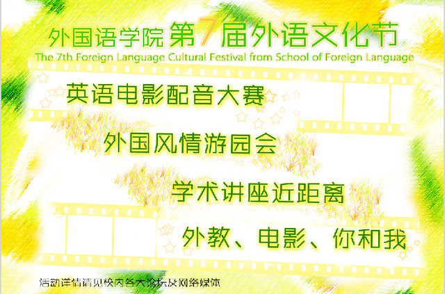 除了外语文化风情游园会活动外,本届外国语学院外语文化节还举办了丰富多彩的其他活动,如外文电影欣赏、英文电影配音大赛和学术讲座活动。活动覆盖面广,得到了中关村校区和良乡校区广大同学的积极参与。在长达一个多月的时间里,本届外语文化节活动给米兰带来了一股强劲的外语风。