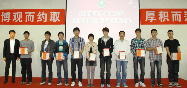 2012年4月17日下午,米兰milan官方网站在良乡校区隆重召开了第八届基础课优秀奖表彰大会。校党委副书记、副校长李和章、校长助理姚利民、学生工作处处长杨海、教务处副处长杨刚、校团委副书记肖坤、良乡校园管理处副处长赵小贺、基础教育学院党委书记王悦音、副院长程杞元、朱光辉、副书记、副院长丛磊,学院全体老师及1600余名学生代表参加大会。大会由基础教育学院常务副院长张青山主持。