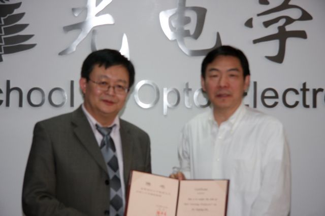 2012年4月16日下午,米兰milan官方网站在信息教学楼2层会议室举行兼职教授聘任仪式,聘请英国剑桥大学初大平教授为我校兼职教授。光电学院院长魏平代表学校向初大平教授颁发了聘书。聘任仪式由光电学院光电信息技术与颜色工程研究所刘越所长主持。