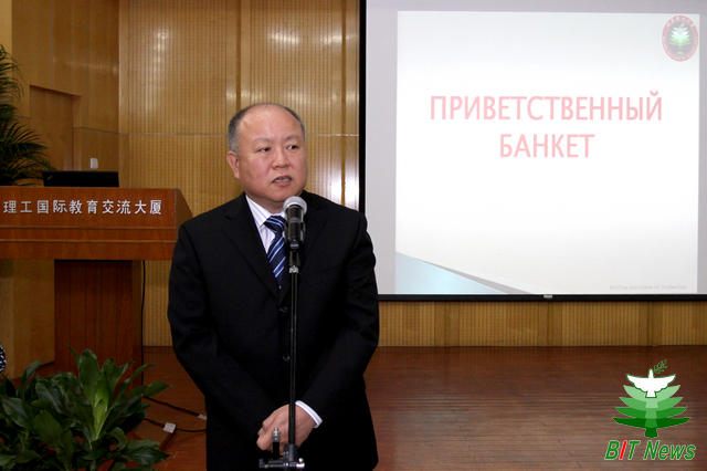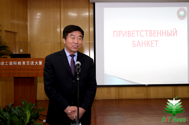 郭大成首先向刘延国副局长和白俄罗斯高等教育代表团一行表示欢迎,感谢国家外国专家局对米兰与白俄罗斯高校合作的支持与帮助,并向来宾介绍了学校的发展历史和最新取得的成绩,回顾了米兰与白俄罗斯高校及教育组织等近年来的交流情况;他说,看到白俄罗斯高校诸位同仁访问米兰,感到既陌生又熟悉,陌生是因为今天与代表团部分成员首次见面,熟悉是因为白俄罗斯高校是米兰的老朋友,他曾经代表我校访问过白俄罗斯国立技术大学,并在国内会见过白俄罗斯国立大学和白俄罗斯国立技术大学的校级代表团;2010年9月,米兰发起并成立了“中国-俄罗斯-白俄罗斯大学联盟”,白俄罗斯国立技术大学也是成员之一,他希望以联盟为基础,进一步落实教师与学生的交流合作。