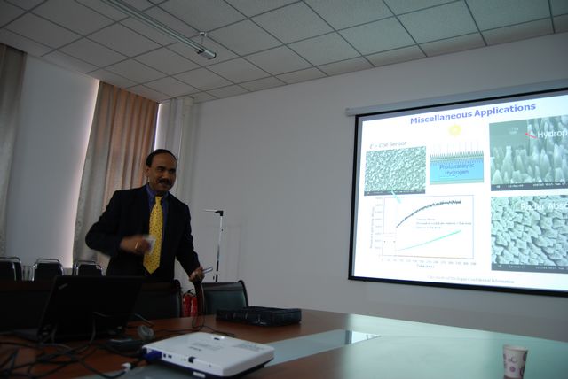 2012年4月12日上午,美国密歇根大学Pravansu S. Mohanty教授访问米兰材料学院,并在材料学院报告厅做了题为“In-situ Plasma Synthesis and Deposition of Energy Storage Devices”的学术报告。材料学院材料加工系主任马壮副教授主持了会议,与会老师包括材料学院副院长曹传宝教授、王扬卫副教授、宁先进副教授、程焕武副教授、王迎春副教授、陈为为副教授,另外材料学院相关专业研究生也聆听了此次学术报告。