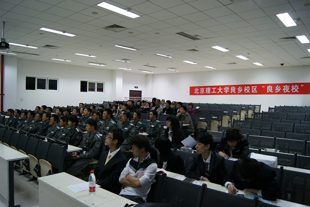 典礼开始,丛磊首先致辞,他阐述了“良乡夜校”成立的意义,希望夜校不仅能丰富在校职工的文化生活,同时也能培养学生的感恩意识,使得学生和工勤人员互相交流,互相熟悉,从而进一步推动和谐校园的发展。
