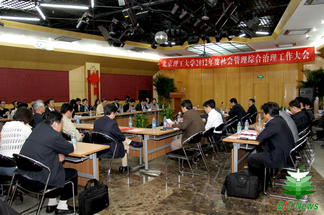 4月26日,学校在国际交流中心二层多功能厅召开了2012年度社会管理综合治理工作大会。校党委书记郭大成、校综治委主任杨宾、副主任赵显利、全体综治委委员、各综治责任单位第一责任人及先进个人代表共计百余人参加了此次会议。会议由赵显利主持。