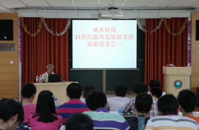 李悌兴老师首先对同学们的到来表示了欢迎并自我介绍。接着,李老师为大家全方位介绍了纳米知识,并主要对各种各样的纳米材料、显微镜下神奇的纳米世界、自然中的纳米现象以及纳米仿生技术、各种各样的纳米器具以及与我校国防特色有关的纳米武器知识进行了科普性讲解。讲座中不仅包含了精彩的科学分析,还包含了精辟的见解以及丰富生动的生活实例,其内容饱含知识而又不失乐趣,引发了同学们极大的兴趣,大家都聚精会神地聆听讲座,每到精彩之处,现场便会响起阵阵掌声。