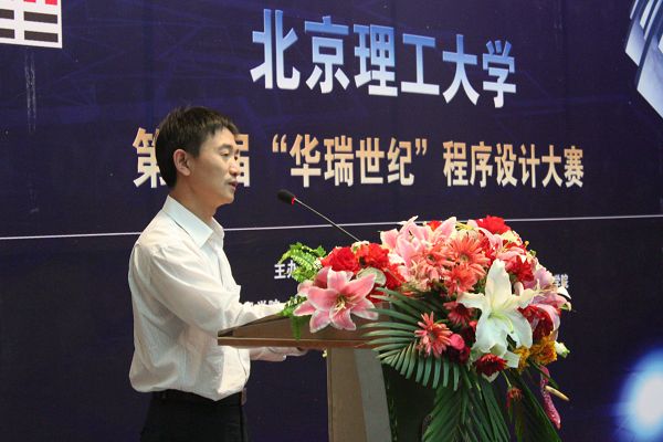 开幕式上,曹峰梅副处长谈了信息时代中程序设计的重要性,鼓励参赛选手发扬团队协作精神和拼搏精神,争取获得优异的成绩,并代表大赛组委会对华瑞世纪集团,集团董事长、我校杰出校友、我校董事会副董事长陈立光先生表示衷心的感谢!