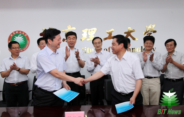 座谈会后,北京理工科技园发展有限公司与常熟经济技术开发管委会签署了有关项目合作框架协议。学校办公室主任郝志强主持座谈会,赞扬了常熟市在经济社会协调发展方面的突出成绩,特别是将历史生态名城保护与现代化经济发展统筹兼顾的宝贵经验,并希望此次签署的项目合作框架协议能够成为双方互惠、双赢合作的良好开端,座谈会前王飏市长一行参观了科技成果展。