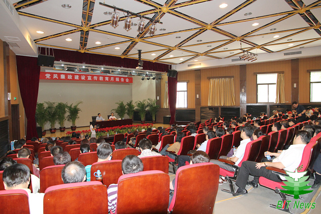 5月22日下午,学校纪委邀请中国和平利用军工技术协会秘书长李东海在7号楼报告厅作了党风廉政建设宣传教育专题报告。副校长杨宾、全校副处级以上领导干部、机关单位科级干部,共计200余人参加了报告会。报告会由校纪委书记杨蜀康主持。