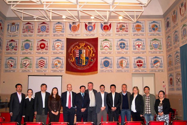 结束了德国的访问行程,代表团一行前往意大利,首先访问了具有763年历史、世界最古老大学之一的意大利卡梅尼诺大学,该校在药物化学合成与分析及神经药理毒理学研究领域处在国际先进水平。代表团在卡大药学院院长的带领下参观了药物分析研究室和药理实验动物中心,开展了广泛的交流。本次访问活动得到卡梅尼诺大学的高度重视,该校副校长及理学院、教育学院、药学院等六个学院院长共同出席了合作意向洽谈会,并就双方合作进行了深入交流,初步确认了欧盟项目合作内容以及国际合作项目内容,并将继续开展科学研究和交换学生方面合作。