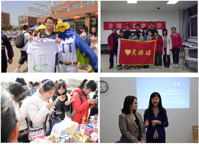 除此之外,心理中心与心理健康协会也开展了“本科生、研究生学生骨干心理培训”、“阳光T恤DIY”、“微爱对对碰”、 “母亲节送温情”、心理健康知识系列宣传等丰富多彩的活动。