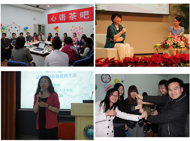 心理中心与心理健康协会开展了三期“心语茶吧”, 六期“正念解压团体训练”,举办了 “提醒幸福——读书分享会”、“从心开始,过平凡而有创意的生活”等心灵成长讲座。