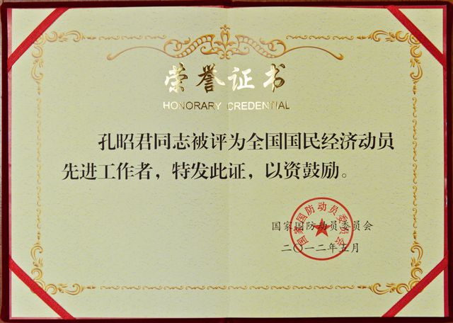 我校管理与经济学院副院长、国家国民经济动员教育培训中心常务副主任、博士生导师孔昭君教授获“全国国民经济动员先进工作者”称号。孔昭君教授曾在2005年获得国家经济动员办公室授予的“国民经济动员先进工作者”(http:/xww/rwfc/41643.htm),这次又获得了国家经济动员办公室上级机构的表彰。这表明我校国民经济动员学术团队在全国国民经济动员领域已经获得了充分认可,也标志着我校对国防建设的贡献得到了国家权威机构的认可。