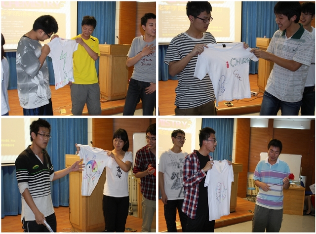简短的开班仪式之后,同学们积极投入到整个精英培养计划活动中,在30分钟的头脑风暴中各队互相认识,增进了解,并绘出了各自的队服。无论是“八神”队的神奇苯环,“绿光”队的绮丽彩虹,“上古八术士”队的炫彩标语还是“I chem”队的精美图标,无不彰显着队员们奇特的想象力和创造力,透露着青年人独有的蓬勃朝气。