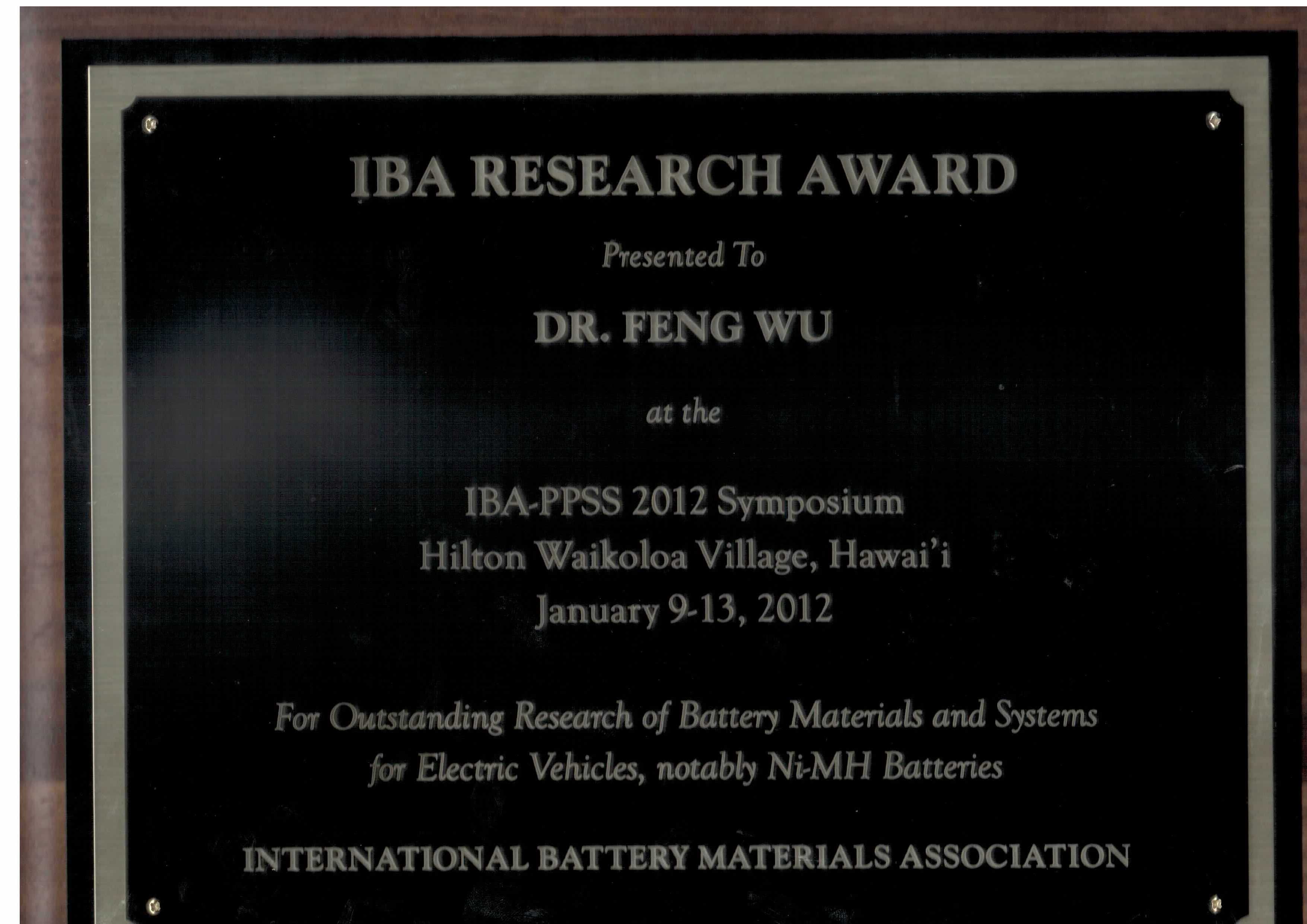 在美国夏威夷举行的国际电池材料协会2012年会颁奖仪式上,国际电池材料协会理事会主席布罗德博士(Brodd)宣读了由该理事会各国专家投票产生的2012年度获奖名单,来自中国米兰milan官方网站的吴锋教授获科研成就奖,来自英国的科学家杰瑞帕克(Jerry Parker)获技术成就奖,来自美国纽约州立大学宾汉顿分校的维庭汉姆教授(Whittingham)获耶格(Yeager)奖。国际电池材料协会的上述奖项,是国际电池与电池材料研究领域的标志性荣誉。此前中科院物理所陈立泉院士和中国电子科技集团公司汪继强研究员获此殊荣。