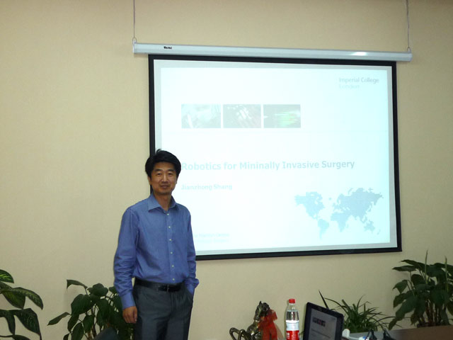 应先进加工技术重点学科实验室主任徐春广教授邀请,5月31日,英国Imperial College尚建忠博士来访我校,与师生进行学术交流。尚建忠博士为广大师生作了关于微创介入外科手术机器人讲座。针对微创手术机器人在人体手术过程中的特点,介绍了机械手的动作原理,以及在LED?腹腔镜配合下的操作过程。微创介入外科手术机器人可极大地拓展医生的能力,克服手动微创手术的缺陷与运动限制,充分发挥微创手术的优势。尚建忠博士和师生们就微型机器人的最新应用和前景展开了讨论。在临床上,使用微型机器人进行微创介入手术,再结合医生的经验,可以大大提高手术质量和安全性,减轻病人的痛苦,缩短术后恢复时间。其研究工作前沿新颖,学术报告生动风趣,给予广大师生重要的科研启发,受到一致好评。