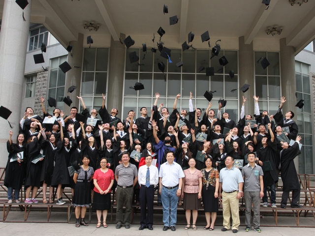 仪式结束后,学院领导、老师与全体毕业生在中心教学楼门前合影留念。
