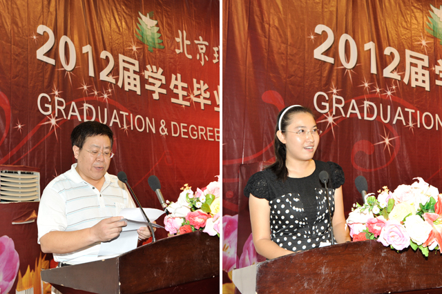 庞思勤院长向顺利毕业的2012届学生表示衷心地祝贺。庞院长说,同学们在四年里不仅自身在成长,也为学校争得了很多荣誉,特别是在去年迎接学士学位评估中,正是在大家的共同努力下,我校新增学士学位单位和专业一次性全部顺利通过评审,获得学士学位授予权,2012届毕业生才拿到了母校独立颁发的学士学位证书。庞思勤院长提醒同学们要做好毕业后面临各种困难的准备,一部分同学甚至会面临第一笔工资低于熟练的“打工仔”的尴尬局面。而要改变这些,就需要有一颗乐观豁达、坚忍不拔和感恩的心,从点滴做起和母校共同成长。