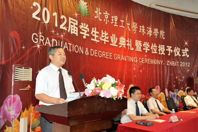 6月17日上午,我校珠海学院2012届毕业典礼暨学位授予仪式在学院报告厅隆重举行。珠海学院领导庞思勤、陆晨、王文清、黄晓鹏、李绍勋和2012届毕业生及其亲朋好友共同参加典礼和仪式。毕业典礼由副院长、党委副书记李绍勋主持。