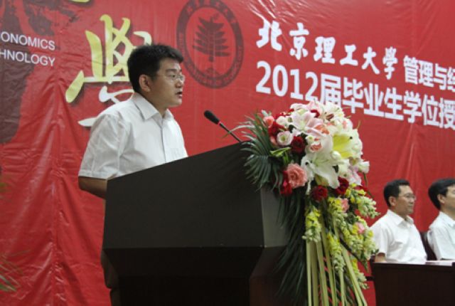 管理与经济学院党委书记李金林教授首先致辞,向圆满完成学业的2012届毕业生表示祝贺,对2012届全体毕业生表达了期望,希望毕业生们能够继续努力拼搏,树立积极乐观的人生态度,勇于迎接挑战,在新的征程上书写新的华彩篇章。