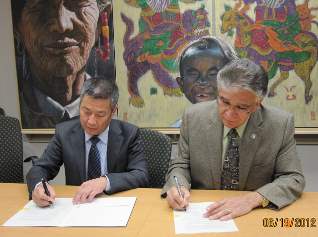 6月18日,赵长禄副校长率我校代表团访问了萨斯喀彻温大学,参加两校共建的孔子学院开幕典礼。在访问期间,代表团与萨斯喀彻温大学研究生院院长Lawrence Martz等举行了会谈,回顾了两校多年在研究生培养方面的合作。经过双方的努力,两校间建立了较好的学生交流和研究生培养机制,我校数十位同学获得奖学金前往该校攻读学位,而萨斯喀彻温大学也派遣了多位交换生和学生团组、合唱团等访问我校。在会谈中,赵长禄介绍了我校今年来在国际化工作和人才培养方面所做的努力,并介绍了我校相关奖学金情况,欢迎萨斯喀彻温同学前来我校学习。双方还就二加二项目等展开了深入的讨论,对项目前景一致看好,将从学院层面积极推进。最后,双方签订了研究生培养奖学金协议,由萨斯喀彻温大学提供3个奖学金,供我校同学前往该校学习。