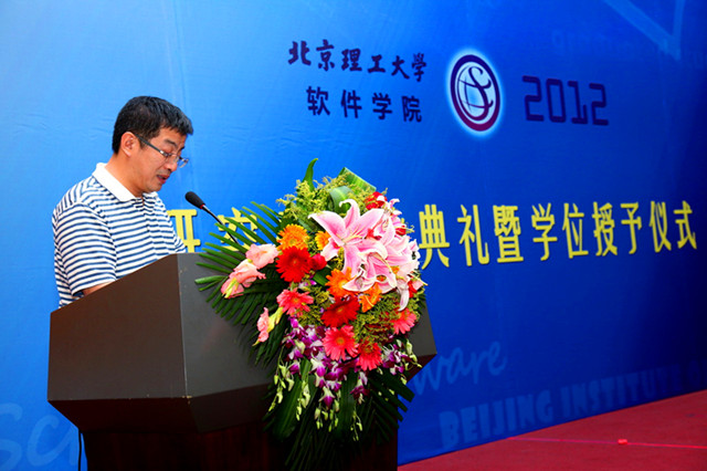 毕业典礼在庄严的国歌声中开始。闫达远副院长向全体人员介绍了软件学院2012届毕业研究生培养及学位答辩情况。