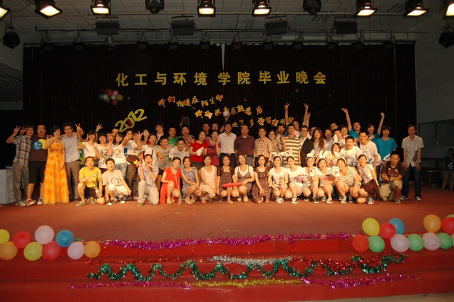6月17日晚,化工与环境学院2012届毕业生晚会在中关村校区新食堂四层举行,学院党委书记张振华、副院长冯金生、副书记副院长张春程及全体毕业生共同参加了晚会。部分学生家长也来到晚会的现场与师生们一起分享毕业的喜悦。整台晚会由毕业生自编自导,毕业生们精心准备了热闹的舞蹈串烧、优美的民族舞蹈、抒情的三人小合唱、精彩的话剧和小品,充分展示了化工学子多才多艺的一面。冯金生老师表演的京剧《智取威虎山》的选段《今日痛饮庆功酒》、辅导员与同学们的互动游戏、在校学生表演的相声和歌曲,向毕业生们送去了全院师生的祝福,不断将晚会推向高潮。